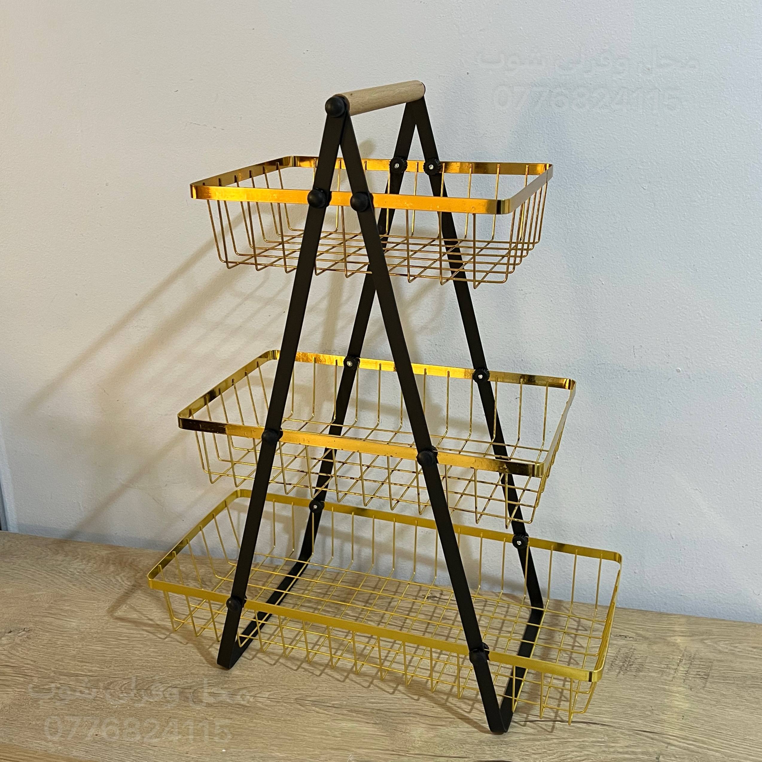 سلة ثلاث طوابق عصرية بالذهبي و الأسود 1 3200 د.ج