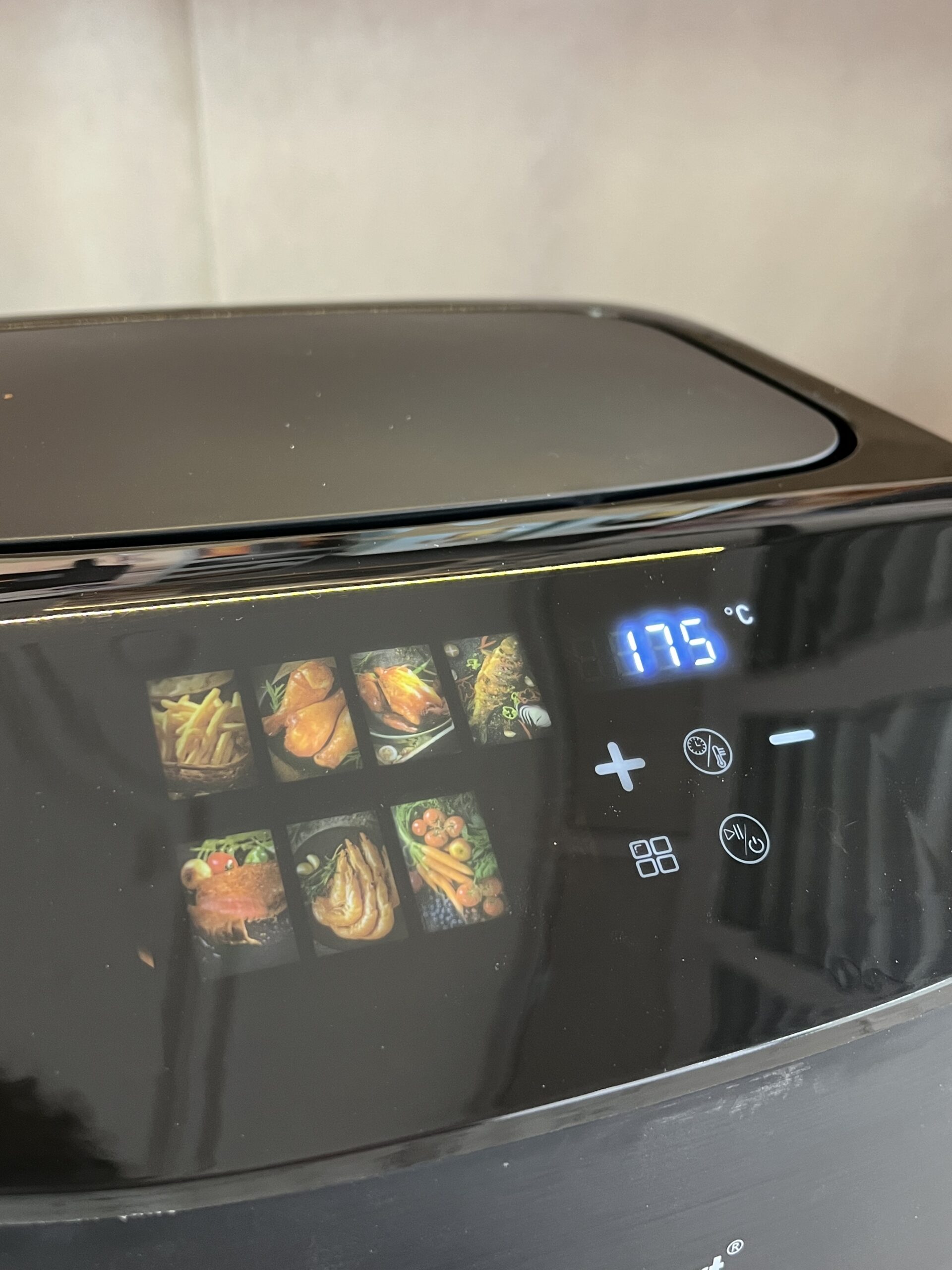 لوحة تحكم رقمية تعمل باللمس: واجهة عصرية وسهلة الاستخدام تحتوي على برامج طهي مسبقة الضبط (للبطاطس، اللحوم، الأسماك، الحلويات)، مع إمكانية التحكم اليدوي الدقيق في درجة الحرارة (حتى 200°م) والوقت.