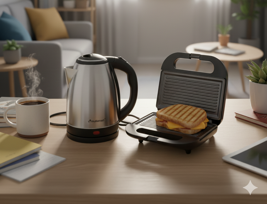 الشواية متعددة الاستخدامات والغلاية الأنيقة ثنائي الطبخ السريع والإقتصادي للطلبة و الخدامين