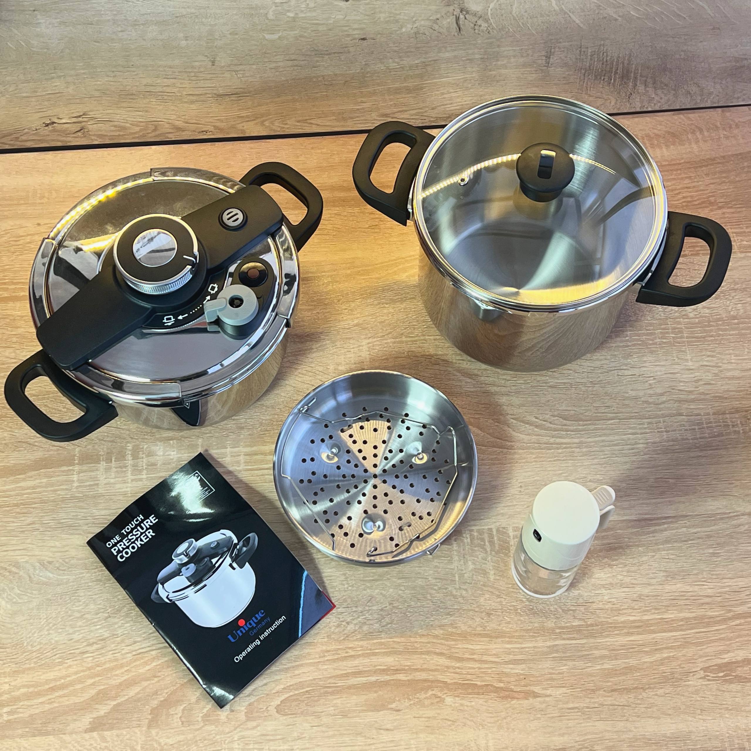 Découvrez l’ensemble d’autocuiseurs Unique Pro Germany, la solution la plus complète, rapide et sûre pour révolutionner vos préparations culinaires. Fini les compromis entre vitesse de cuisson et qualité de la saveur ! Ce pack Duo exclusif vous offre la flexibilité de deux capacités idéales pour la cuisine quotidienne et les grandes occasions.